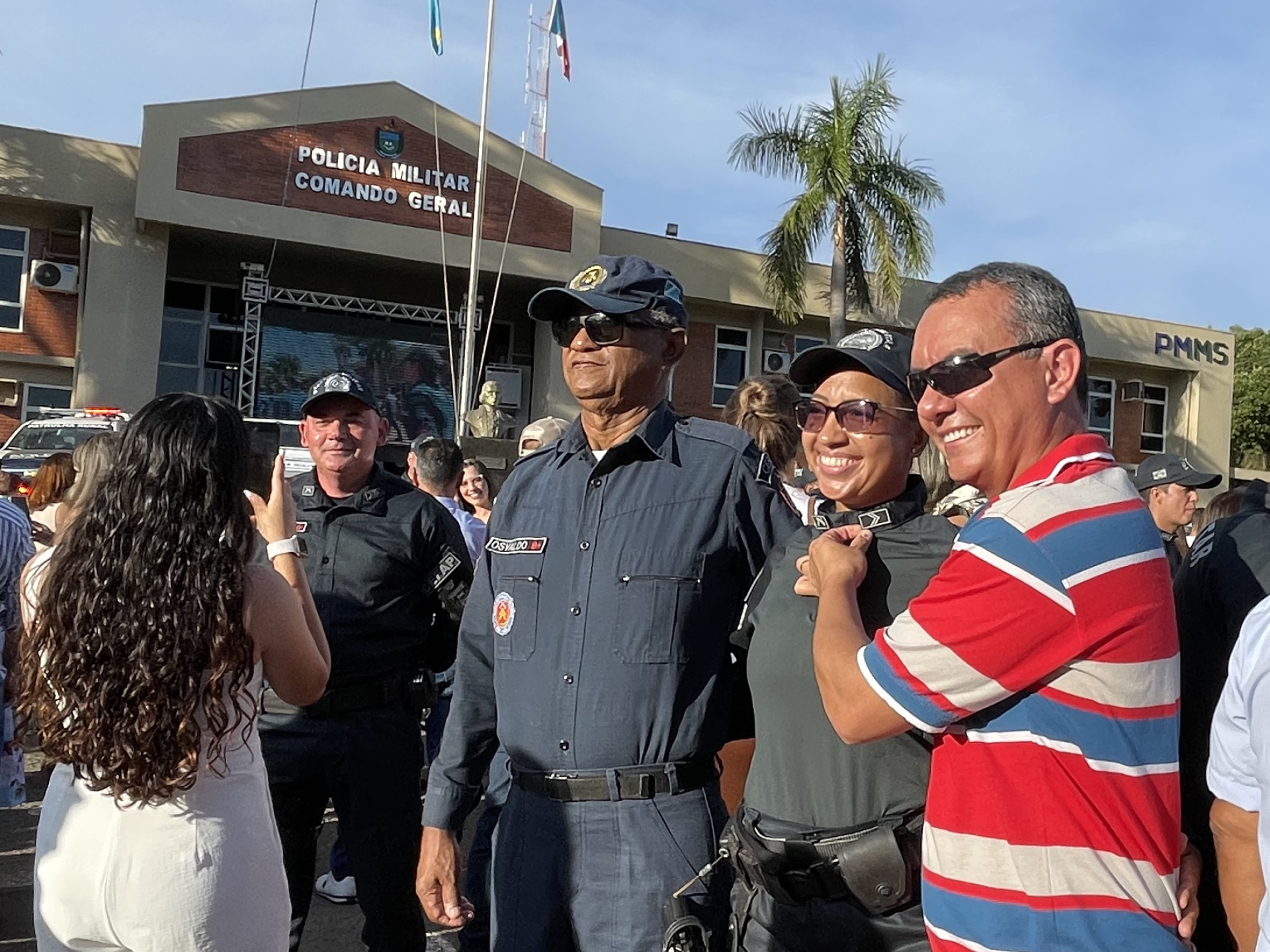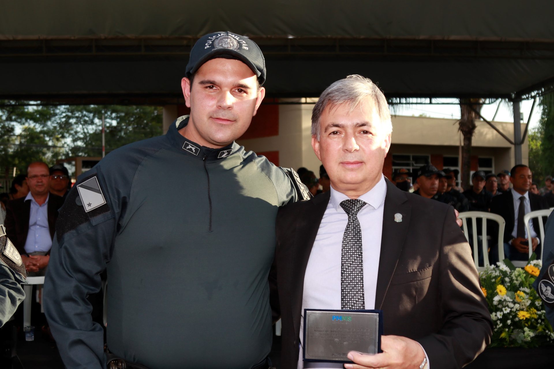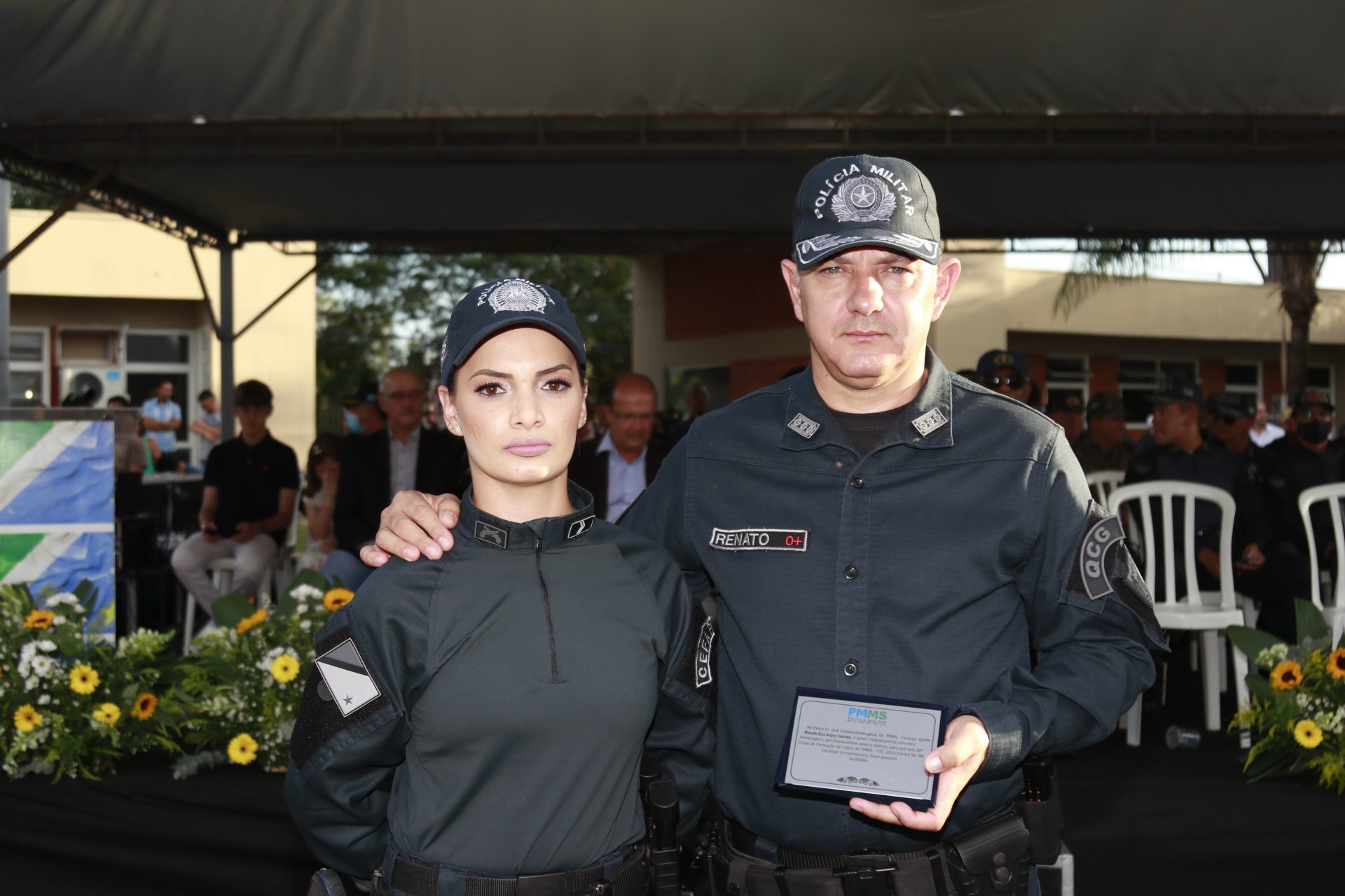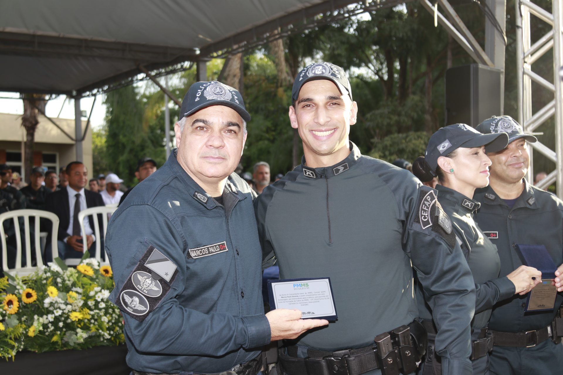 O Comandante-Geral da PMMS, Coronel PM Marcos Paulo Gimenez, o Secretário de Estado de Justiça e Segurança Pública, Antonio Carlos Videira, o Subcomandante-Geral da PMMS, Coronel PM Renato dos Anjos Garnes, o Chefe do Estado-Maior-Geral da PMMS, Coronel PM Nivaldo de Pádua Mello, o Diretor de Ensino, Instrução e Pesquisa da PMMS, Coronel PM Airton Leonel Praeiro e demais autoridades que foram decisivas para a realização do curso, receberam placas de homenagens dos formandos.