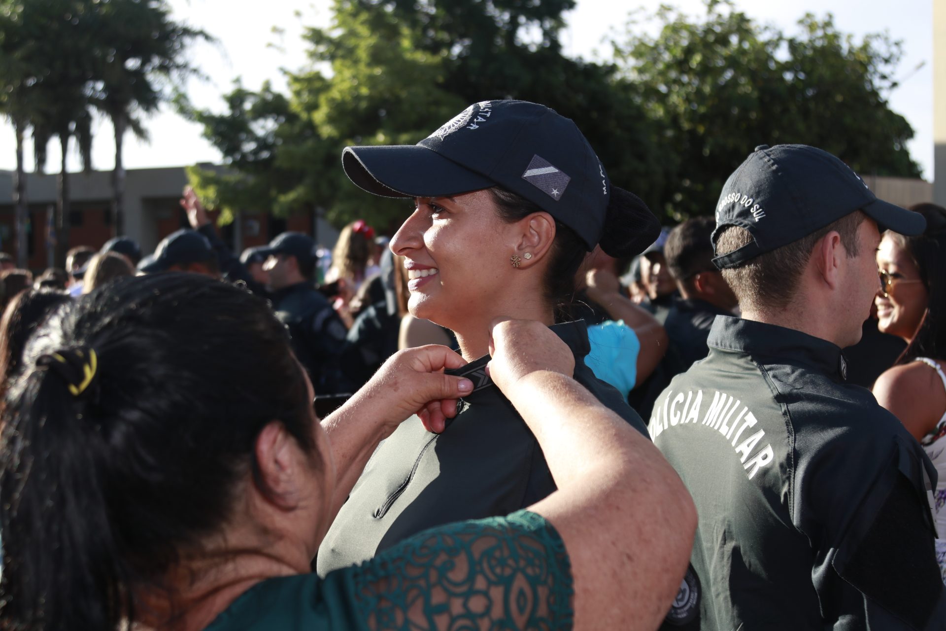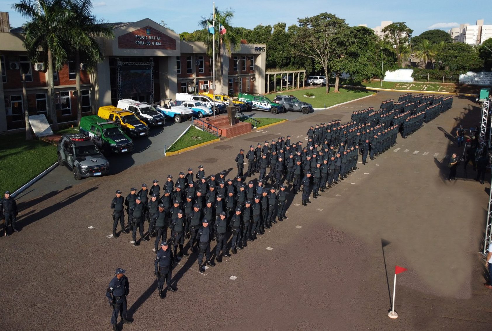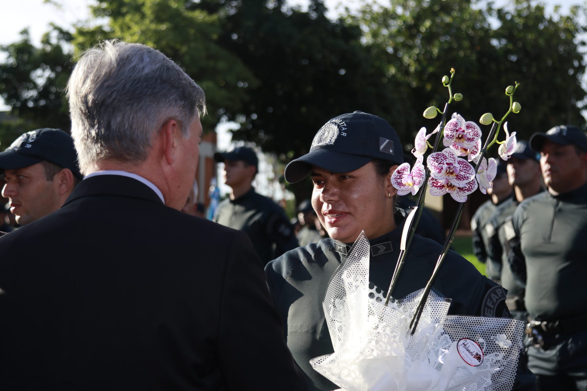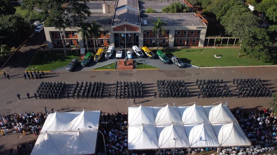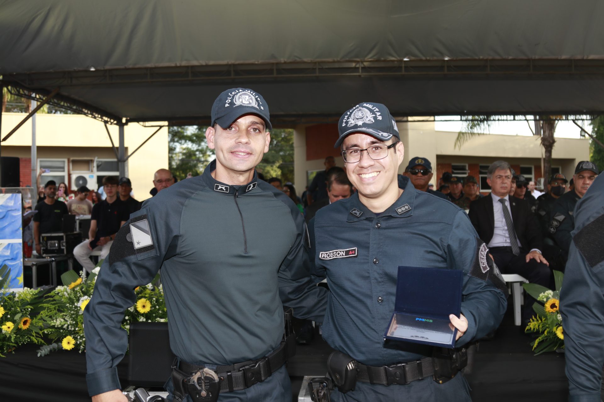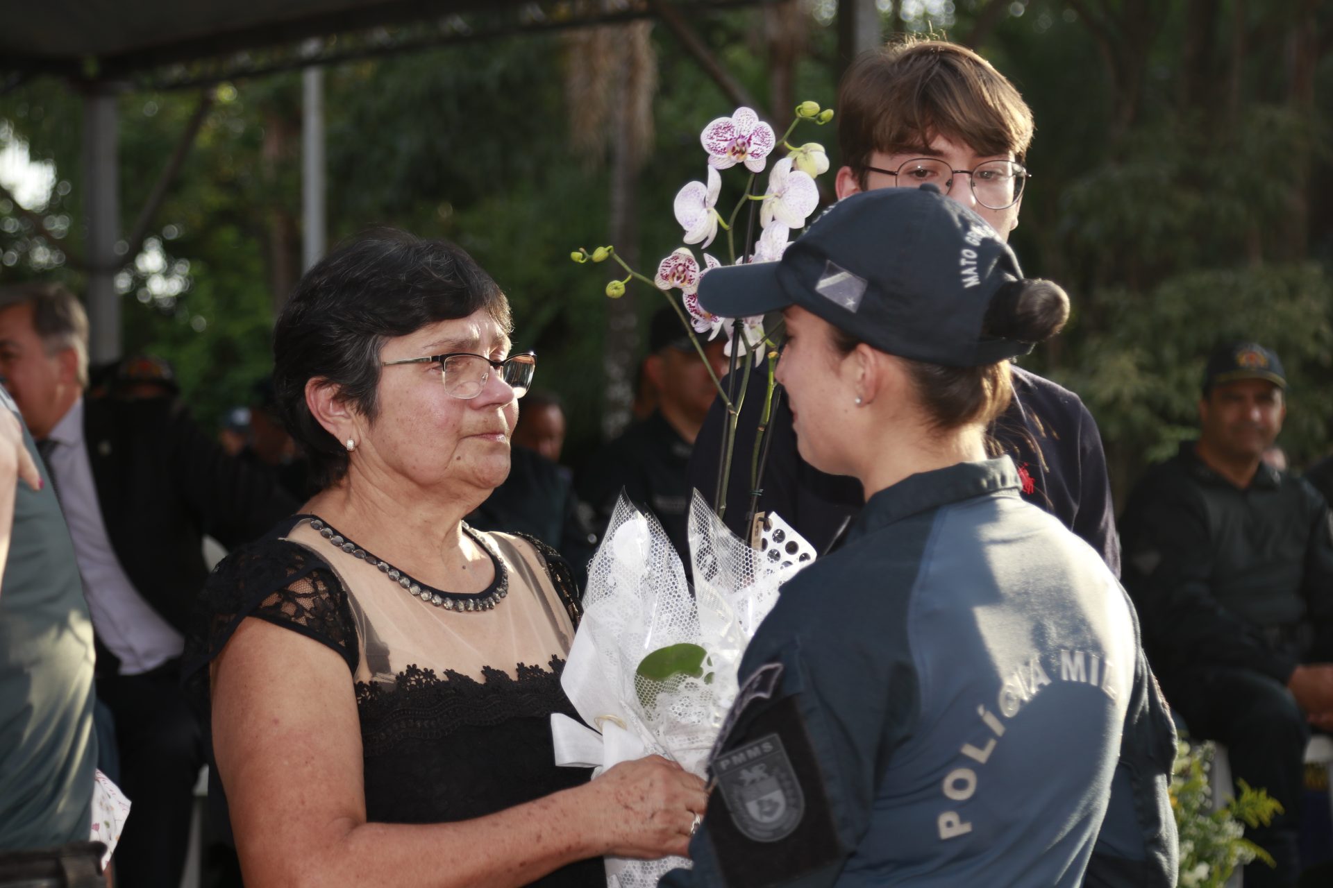 O Comandante-Geral da PMMS, Coronel PM Marcos Paulo Gimenez, o Secretário de Estado de Justiça e Segurança Pública, Antonio Carlos Videira, o Subcomandante-Geral da PMMS, Coronel PM Renato dos Anjos Garnes, o Chefe do Estado-Maior-Geral da PMMS, Coronel PM Nivaldo de Pádua Mello, o Diretor de Ensino, Instrução e Pesquisa da PMMS, Coronel PM Airton Leonel Praeiro e demais autoridades que foram decisivas para a realização do curso, receberam placas de homenagens dos formandos.