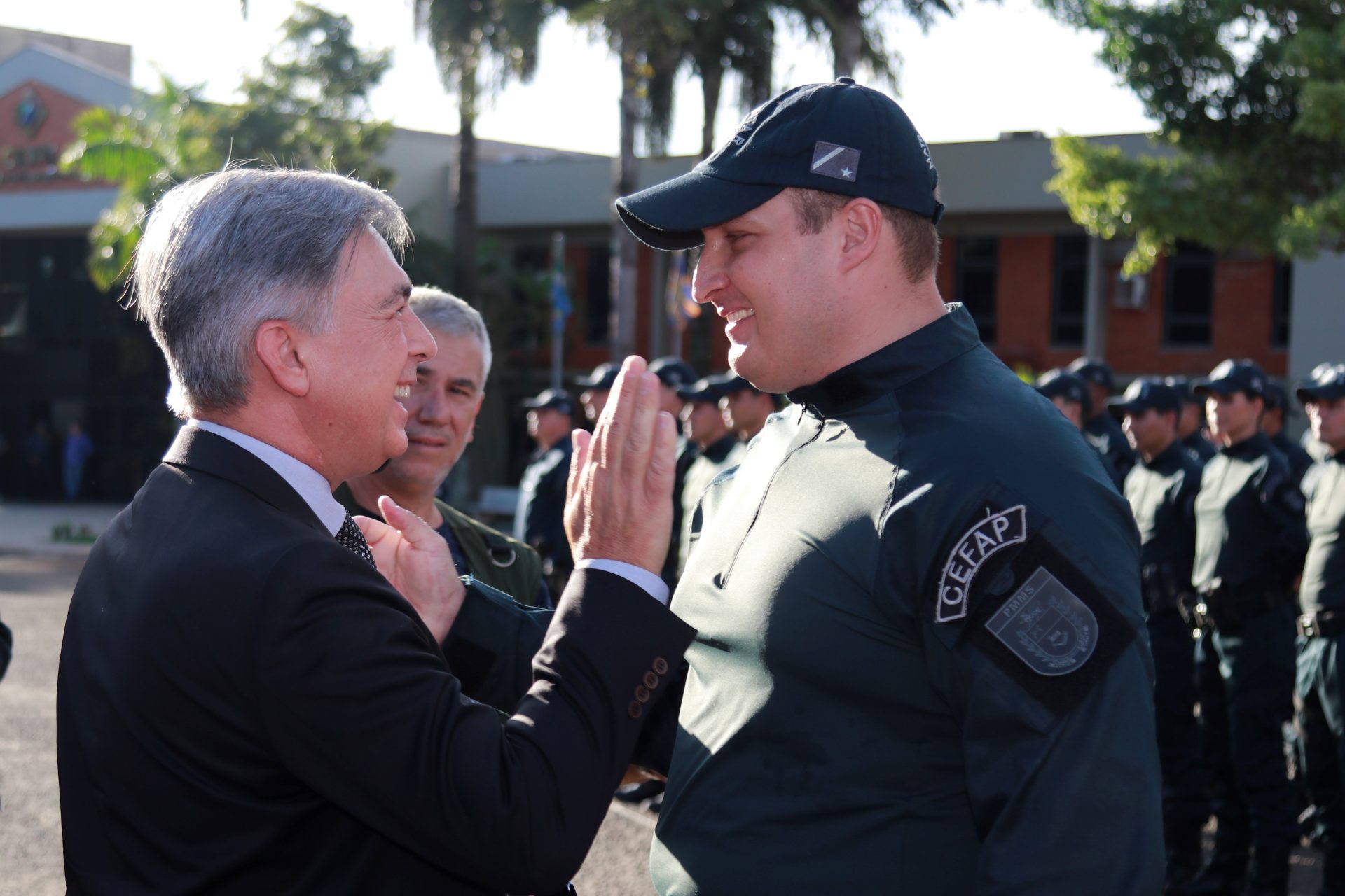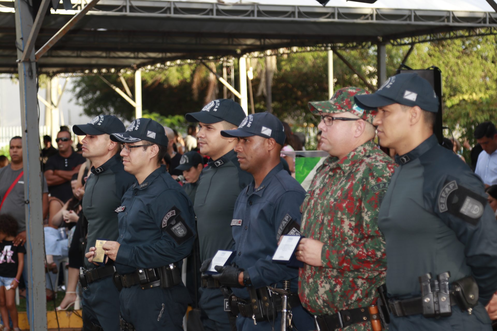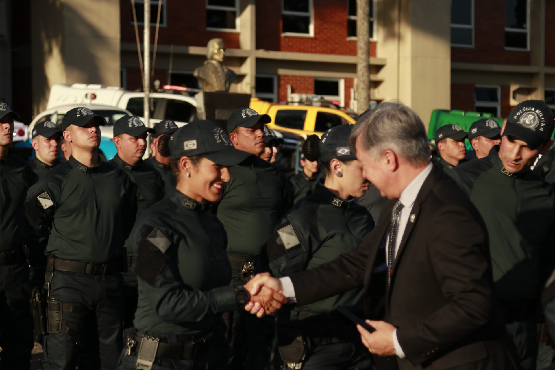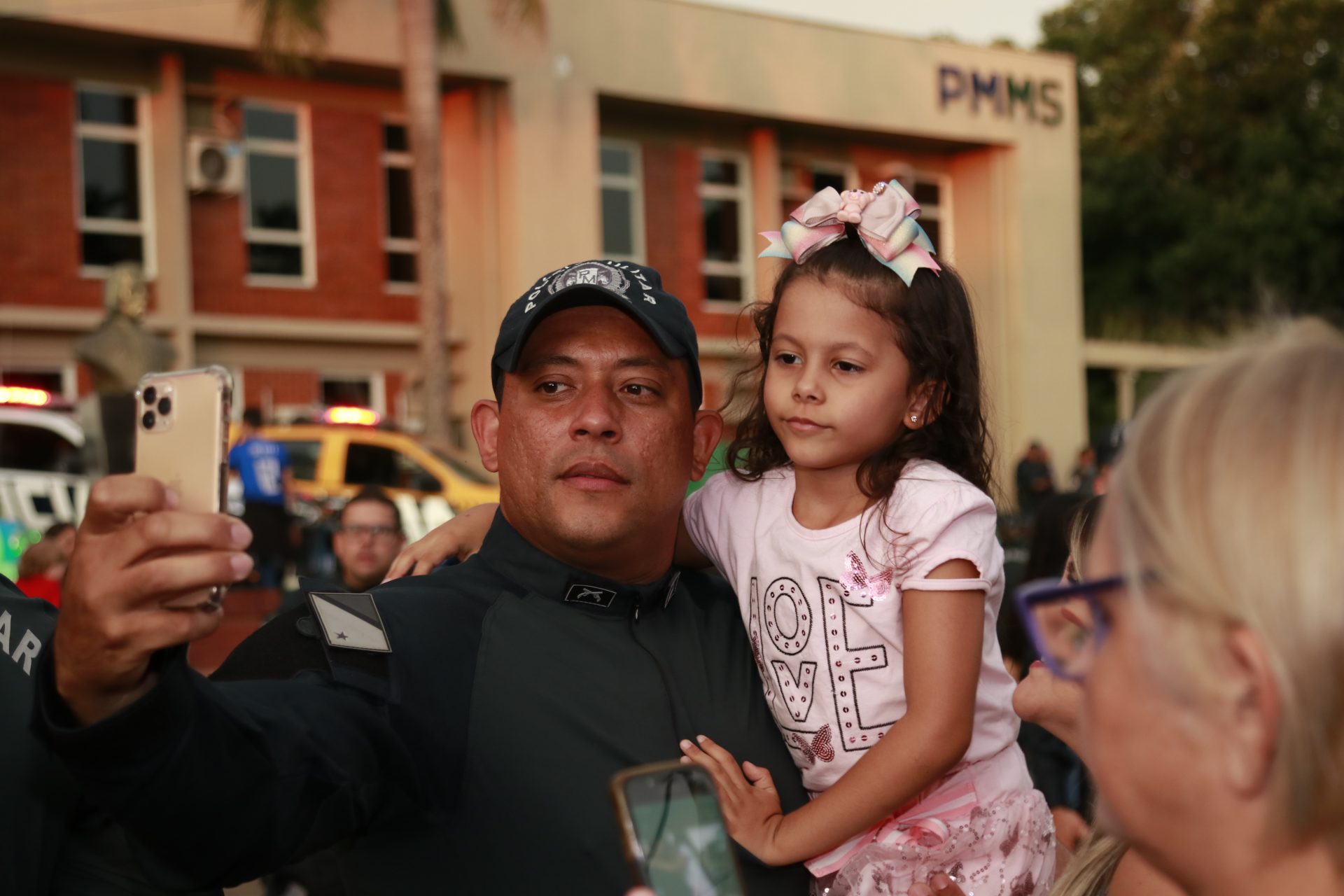 O Comandante-Geral da PMMS, Coronel PM Marcos Paulo Gimenez, o Secretário de Estado de Justiça e Segurança Pública, Antonio Carlos Videira, o Subcomandante-Geral da PMMS, Coronel PM Renato dos Anjos Garnes, o Chefe do Estado-Maior-Geral da PMMS, Coronel PM Nivaldo de Pádua Mello, o Diretor de Ensino, Instrução e Pesquisa da PMMS, Coronel PM Airton Leonel Praeiro e demais autoridades que foram decisivas para a realização do curso, receberam placas de homenagens dos formandos.