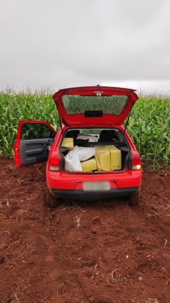 Após 4 quilômetros, o motorista abandonou o automóvel as margens da rodovia e fugiu, adentrando em uma plantação de milho.