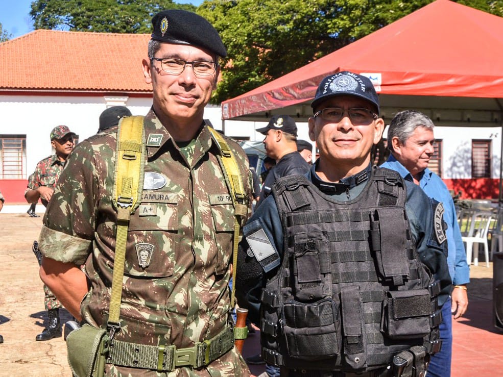 O comandante do 10° RC Mec – REGIMENTO ANTÔNIO JOÃO, tenente-coronel Kenji Alexandre Nakamura, recepcionou varias autoridades, dentre elas o comandante do 11°BPM, tenente-coronel Wilson Cesar Velasques.