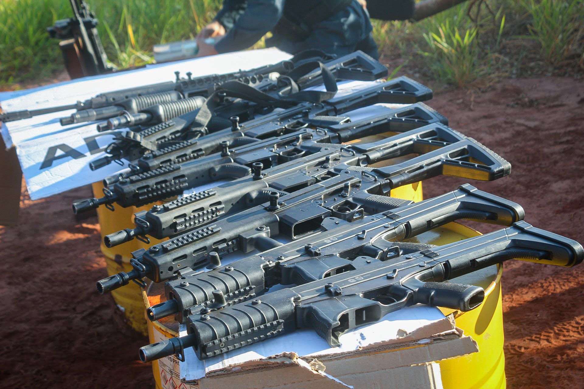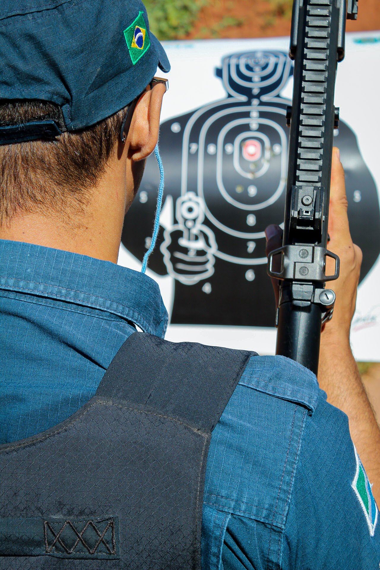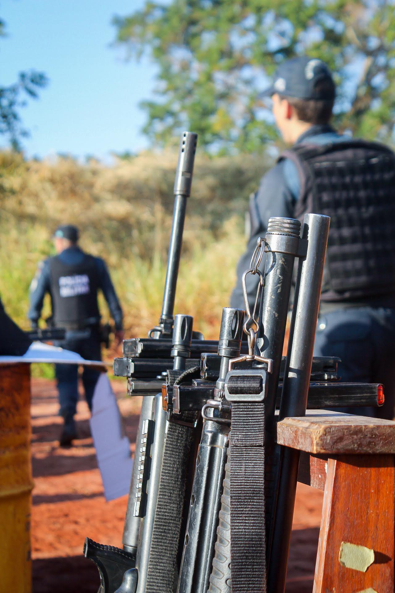 Os policiais militares receberam instruções teóricas e práticas referente aos modelos de armamentos utilizados pela corporação, com ênfase no treinamento de tiro com as pistolas de calibre 40. e com fuzil calibre 5.56.