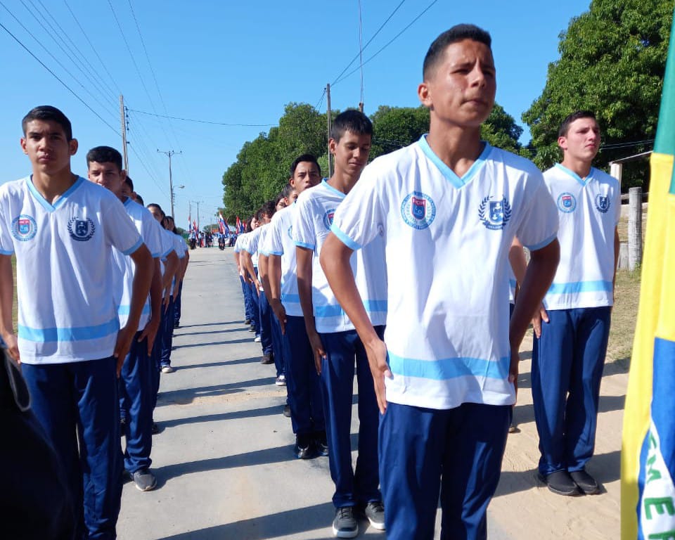 Alunos do 9° ano A, da Escola Municipal Cívico-Militar Claudio de Oliveira do município de Porto Murtinho participaram de desfile cívico no município paraguaio de Carmelo Peralta em alusão ao Dia da Independência do Paraguai.