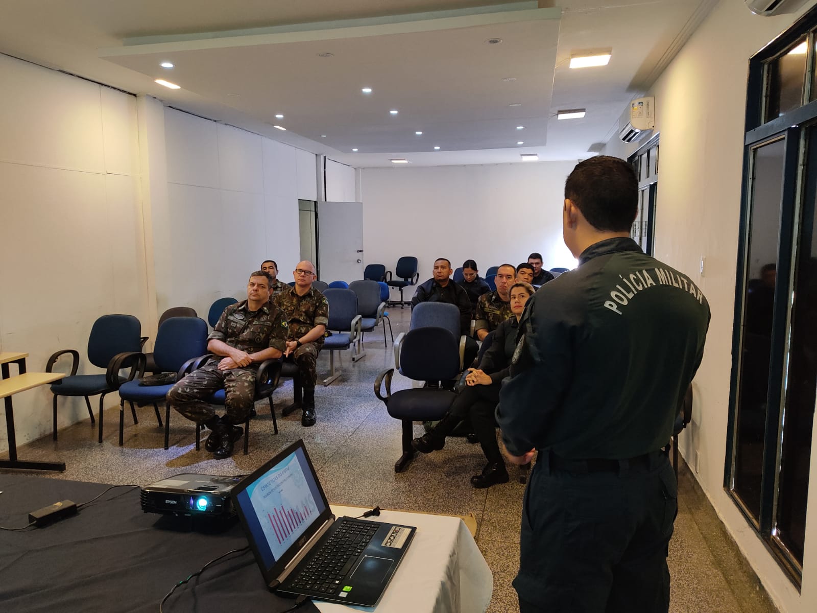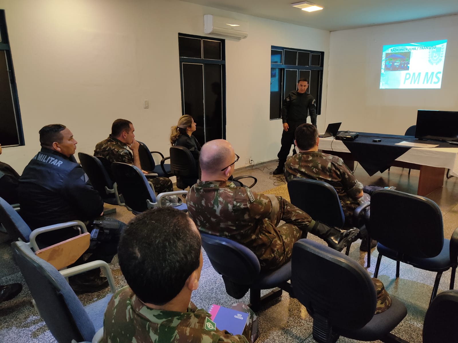 A comitiva da 18ªBda foi recepcionada pela comandante do 6º Batalhão de Polícia Militar, Tenente Coronel Leticia e oficiais do quartel. Em seguida, o Major Diego, subcomandante do 6ºBPM, que apresentou assuntos pertinentes da corporação, entre eles sua logística, atuação, efetivo, estrutura, dados operacionais, além do planejamento estratégico que vai nortear nossa instituição pelos próximos anos.