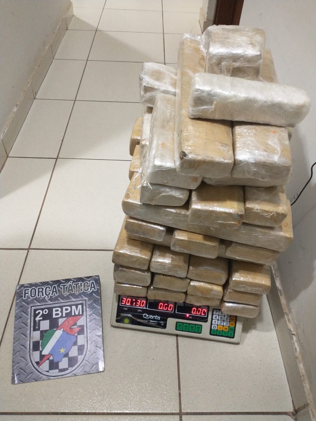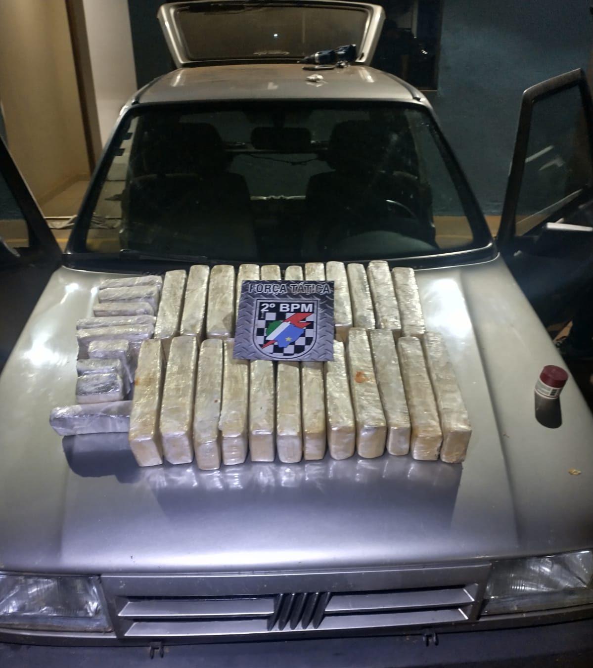 Ao ser localizado FIAT UNO e o condutor do veículo entrevistado, a equipe tática realizou uma vistoria em todo interior do veículo, localizando a droga. O condutor do veículo confessou que os 30Kg da substância esverdeada análoga a maconha, estaria com destino para a cidade de São Paulo.