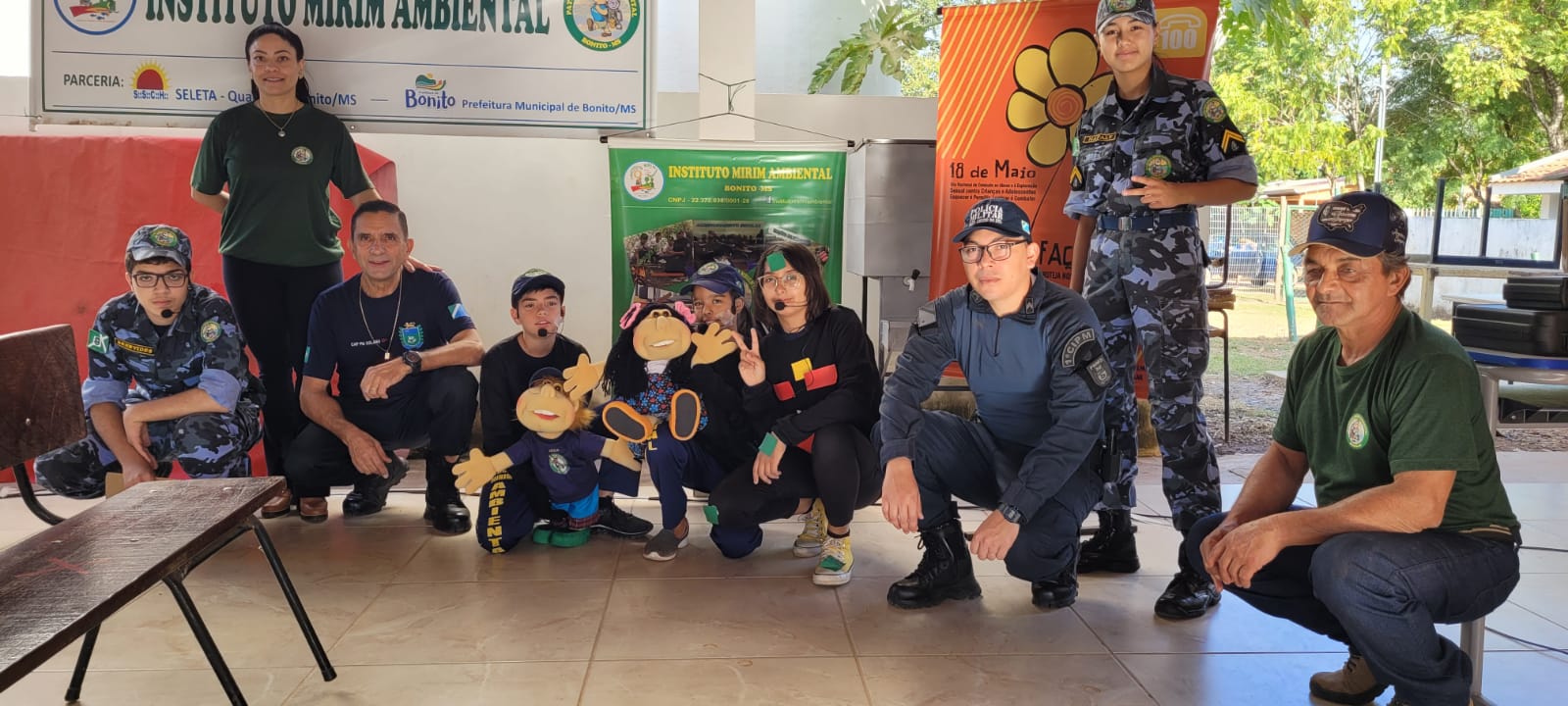 Polícia Militar e Instituto Mirim Ambiental realiza ações do Maio Laranja em Bonito
