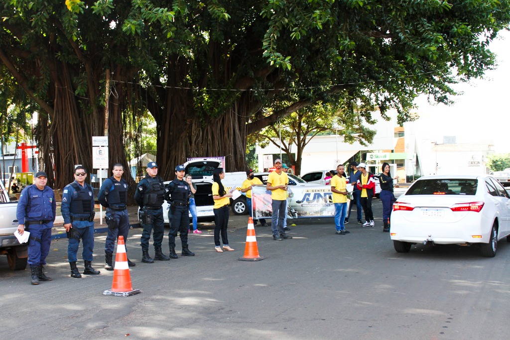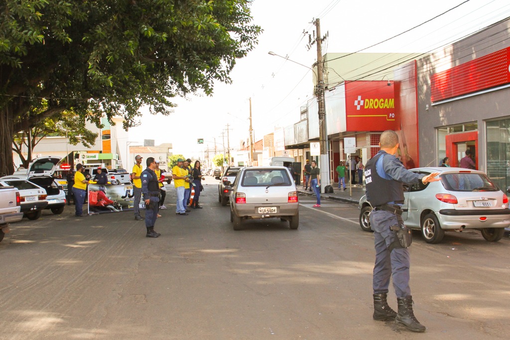 A ação conjunta foi realizada na Praça da República e consistiu na realização de minibloqueios no trânsito urbano, onde os condutores abordados receberam orientações verbais e panfletos com orientações diversas sobre a segurança no trânsito.