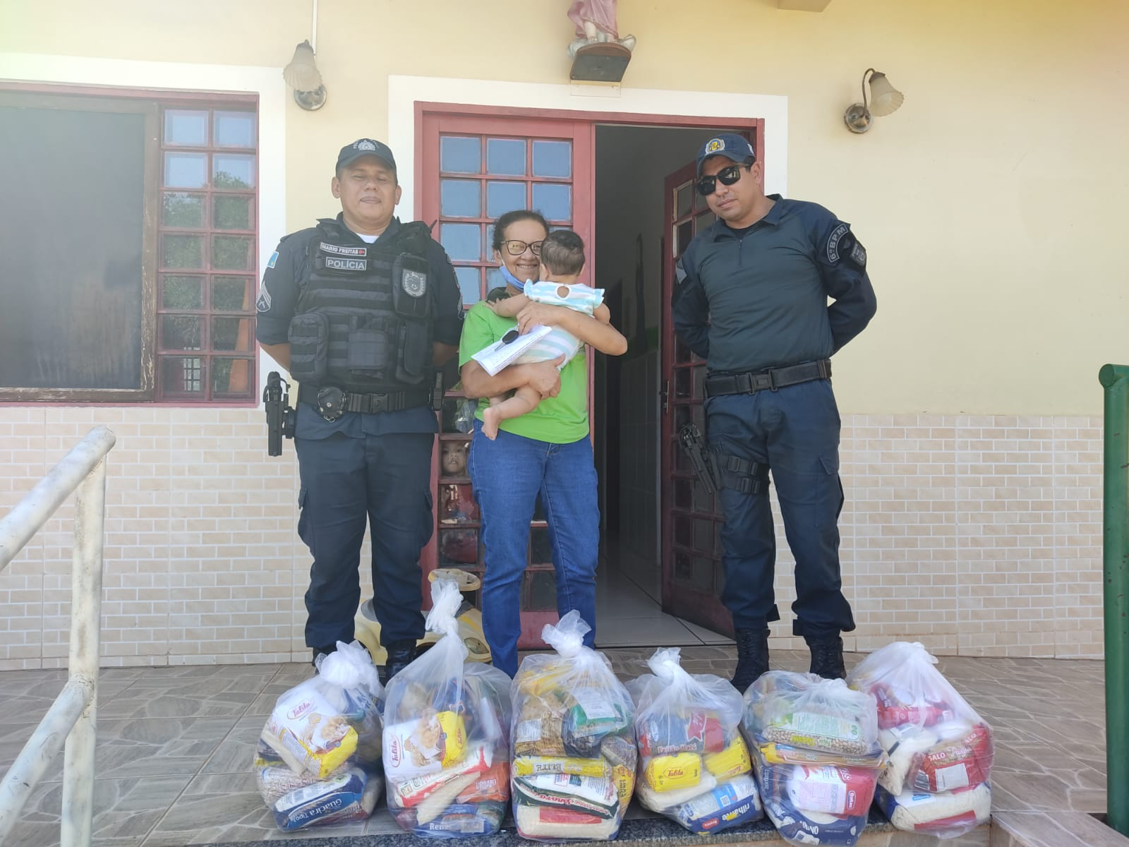 Polícia Militar de Corumbá realiza ação solidária com doação de cestas básicas arrecadas em arraial para famílias carentes