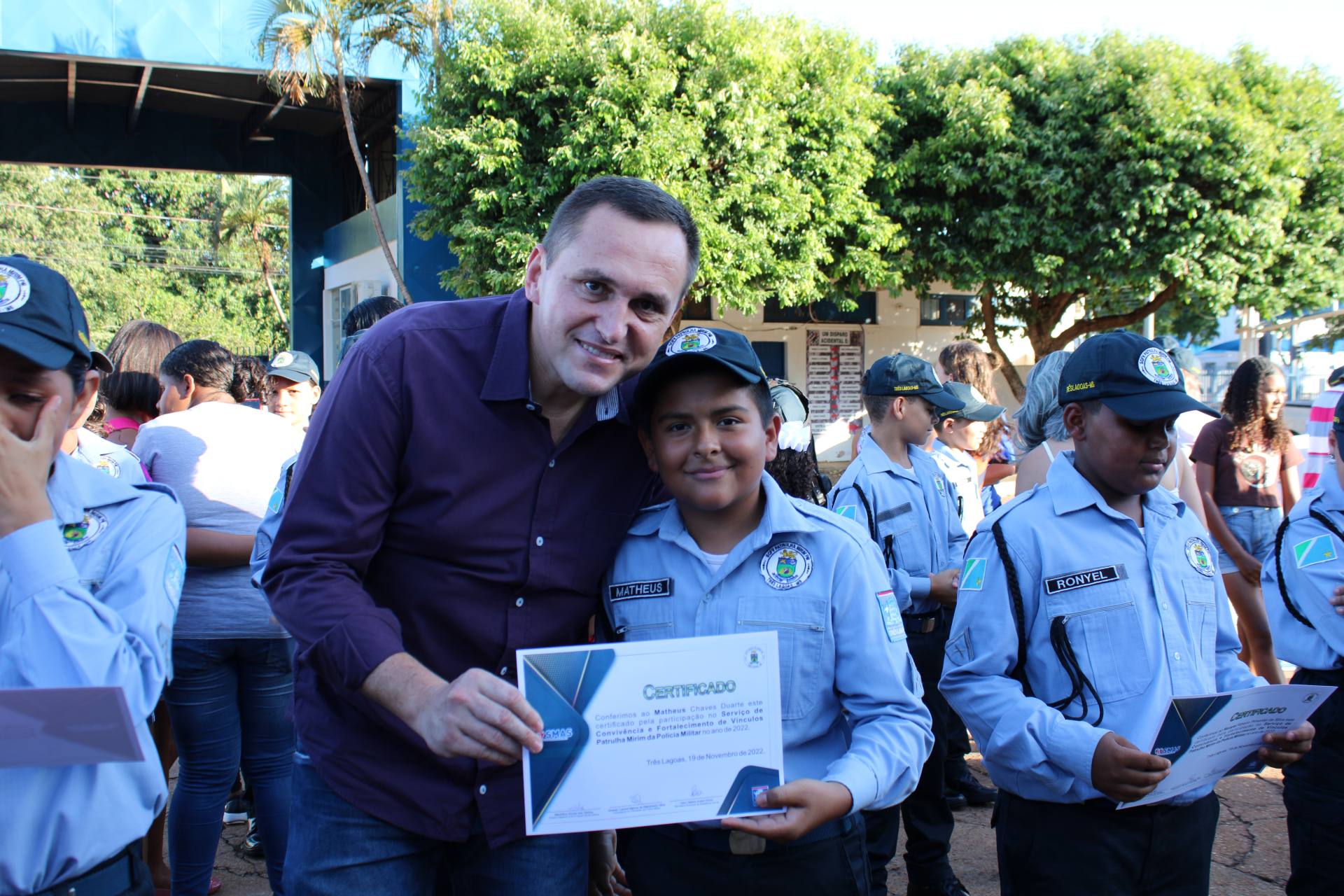 Três Lagoas – MS, no dia 19 de novembro, o 2º Batalhão de Polícia Militar realizou a solenidade de formatura de encerramento do Projeto Patrulha Mirim, ano letivo de 2022, e a formatura dos novos patrulheiros.