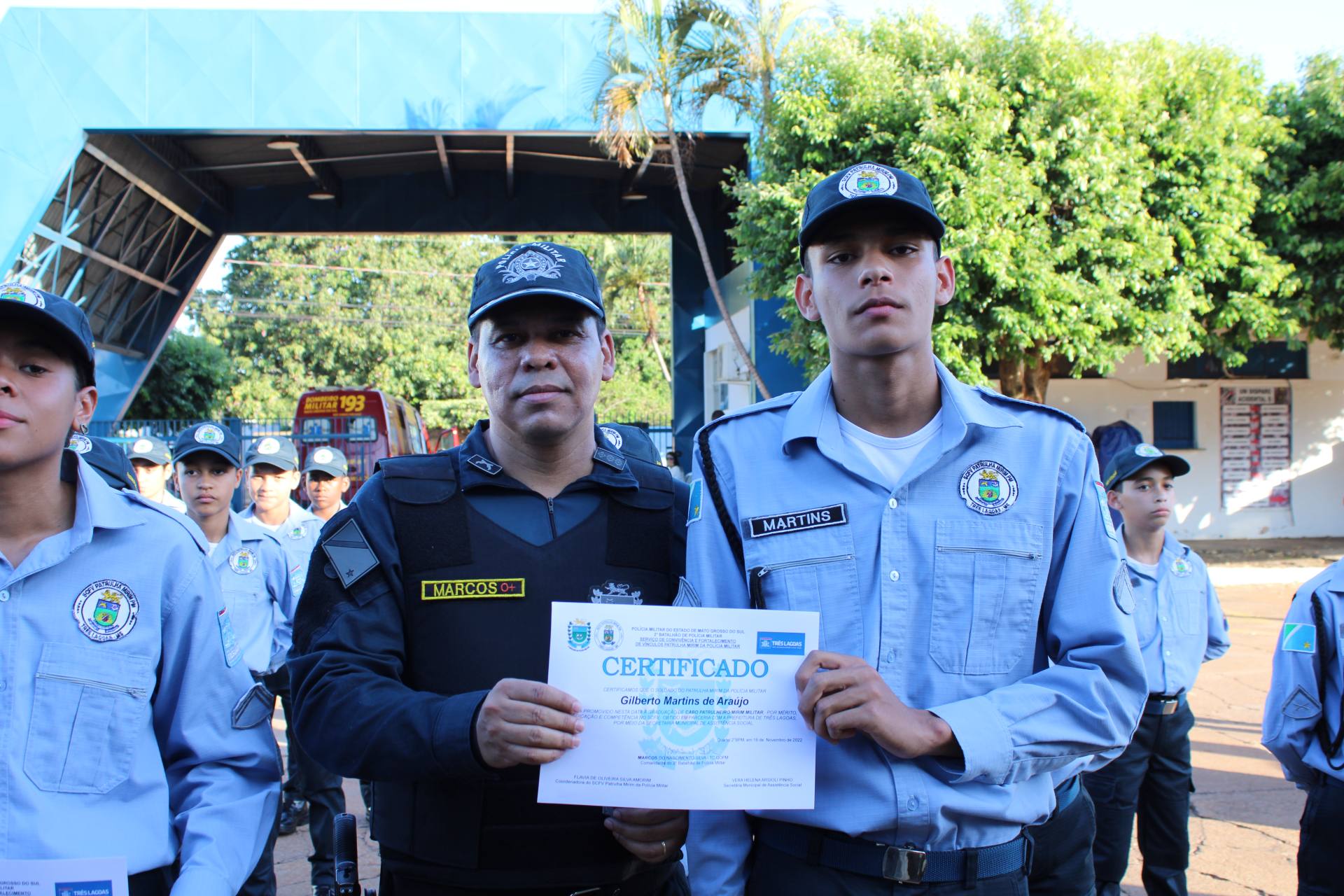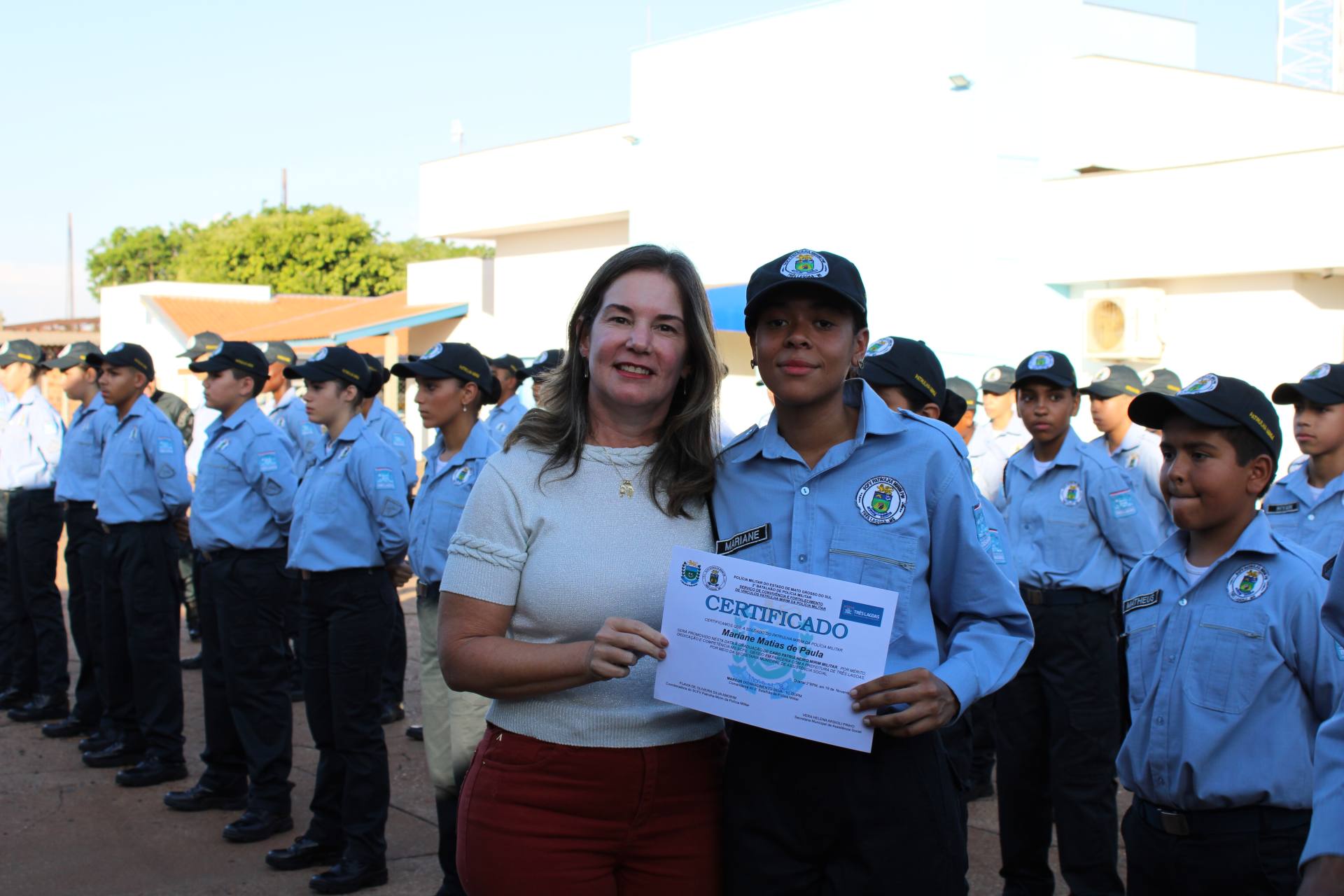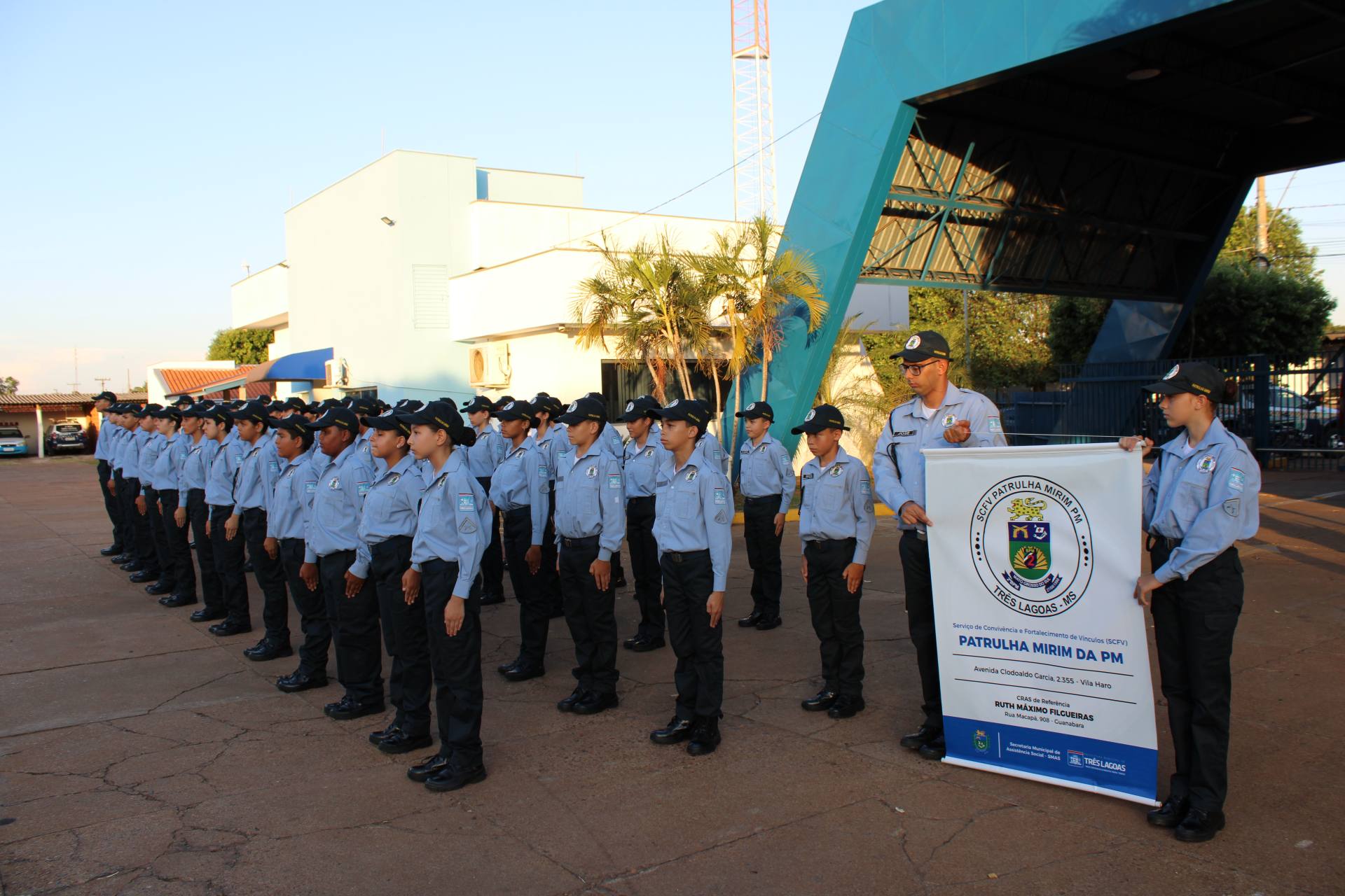 A formatura aconteceu na tarde deste sábado, na Sede do 2º BPM onde se iniciou com a entrada do pelotão de patrulheiros mirins, cantando a canção da PMMS, executada pela Banda Marcia Cristo Redentor; A Patrulha Mirim é formada por crianças e adolescentes do serviço de convivência e fortalecimento de vínculos Patrulha Mirim da Polícia Militar, projeto este pautado na construção dos preceitos da moral, oferecido a essas crianças e adolescentes através de uma parceria do 2º Batalhão de Polícia Militar com a Secretária Municipal de Assistência Social do Município de Três Lagoas e a iniciativa privada Empresa Suzano.