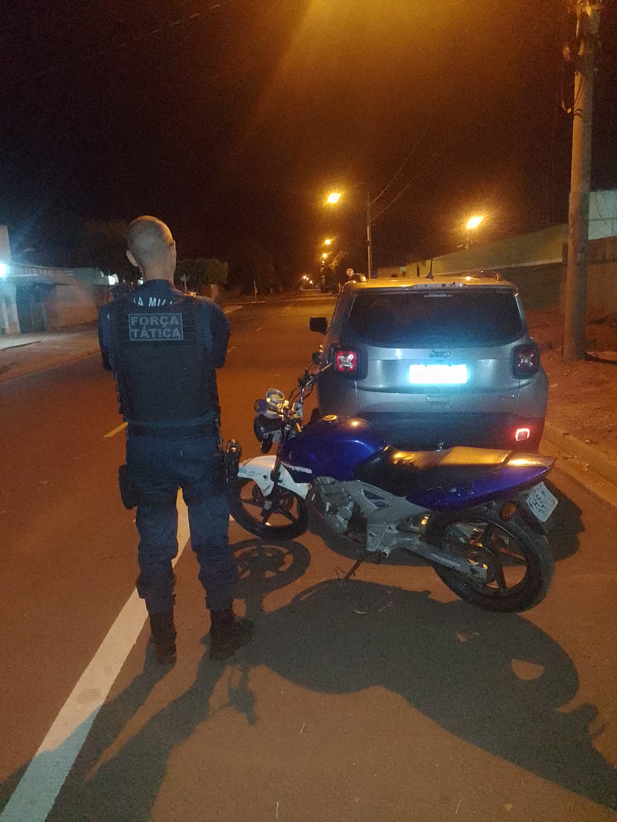 Nesta segunda-feira, por volta das 20h30min, a guarnição da Força Tática do 2º Batalhão foi acionada para atender uma ocorrência de roubo, onde a vítima foi abordada por 02 indivíduos em uma motocicleta, onde o garupa de posse de uma arma de fogo anunciou um assalto e após render a levaram o veículo Jeep/Renegade, 02 aparelhos celulares, e uma bolsa contento documentos pessoais e cartões de crédito.