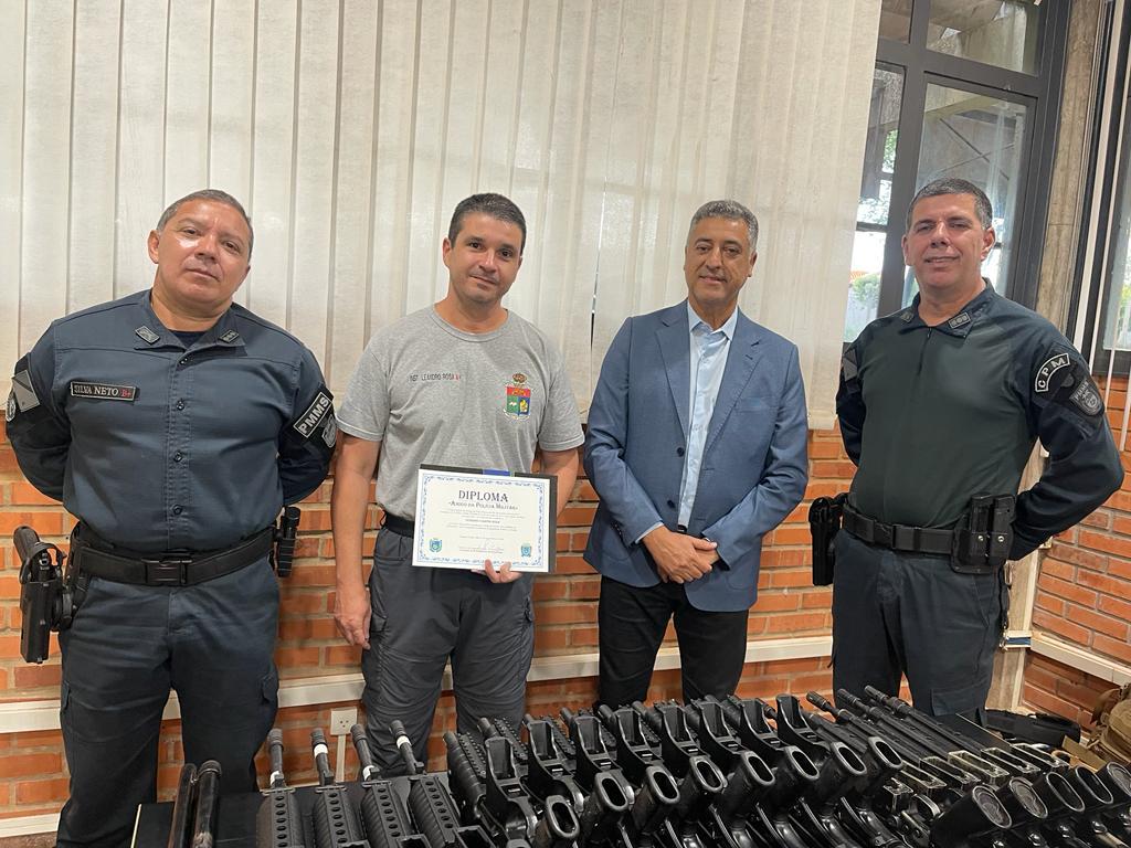 A solenidade de término do curso de armeiros ocorreu na Acadepol e contou com a presença do Diretor da DEIP, Coronel PM Massilon de Oliveira e Silva Neto( representando o Comandante-Geral da PMMS), do Comandante do Policiamento Metropolitano, Coronel PM Emerson de Almeida Vicente(que representou o Presidente do COISEC, Coronel PM Claudemir), e do Diretor da Acadepol, Delegado Devair Aparecido Francisco.